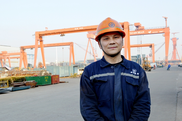 裝配、電焊、起重、板筋……集多項技能于一身,在新?lián)P子造船的管舾集配車間,我們見到了在A區(qū)東跨忙碌的蔣志剛,今年42歲的他,日前被國務院農民工工作領導小組授予“全國優(yōu)秀農民工”榮譽稱號,成為了農民工學習的榜樣。